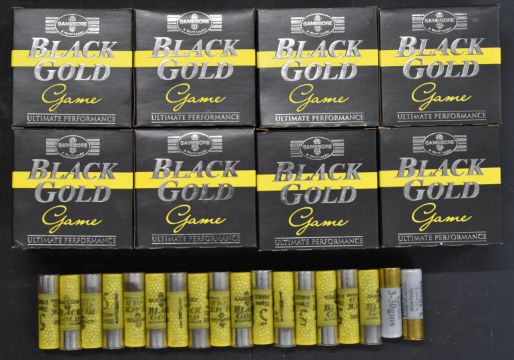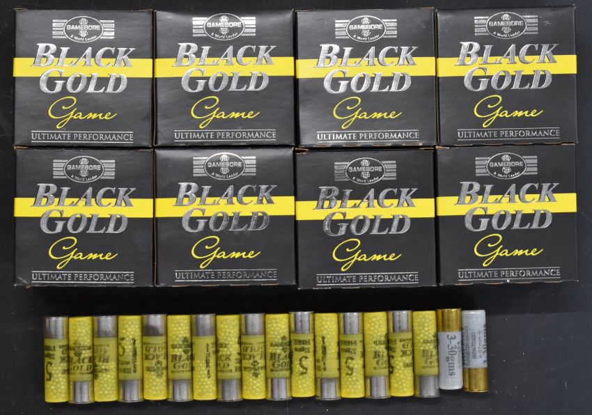Two-hundred-and-twenty-five 20 bore Gamebore Black Gold shotgun cartridges, most in original boxes. PLEASE NOTE THAT A VALID RELEVANT FIREARMS/SHOTGUN CERTIFICATE IS REQUIRED TO HANDLE/PURCHASE THIS ITEM.We are not able to offer our usual postage service for this lot