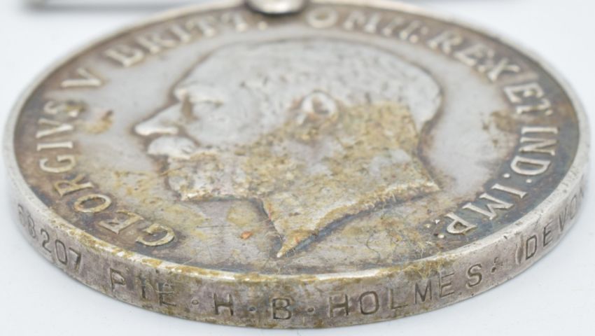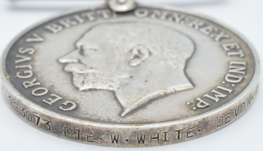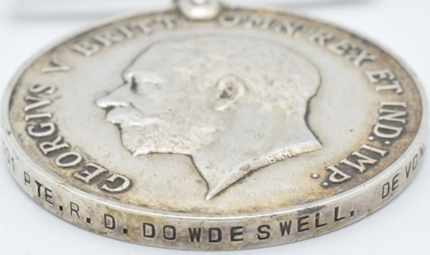 British Army WW1 medals comprising three War Medals named to 68301 Pte R D Dowdeswell, 68207 Pte H B Holmes and 103073 Pte W White, all Devonshire Regiment