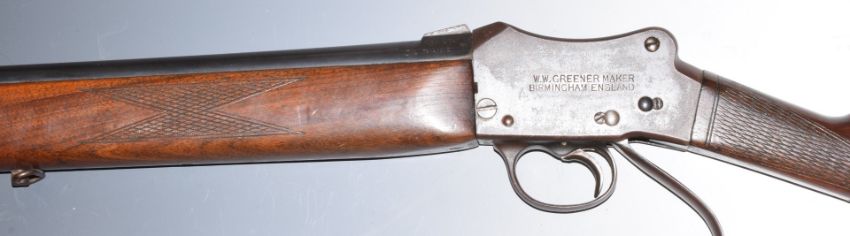 W W Greener Greener's GP Gun Martini action 12 bore single barrelled shotgun with chequered grip and forend, named lock and 28 inch barrel, overall length 112cm, serial number C45755. PLEASE NOTE THAT A VALID RELEVANT FIREARMS/SHOTGUN CERTIFICATE IS REQUIRED TO HANDLE/PURCHASE THIS ITEM.