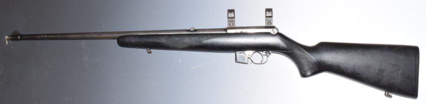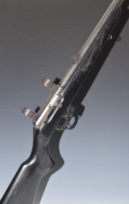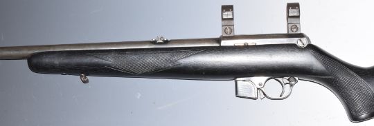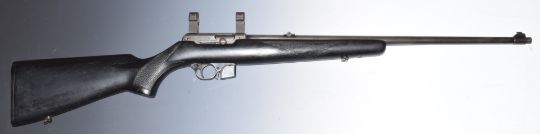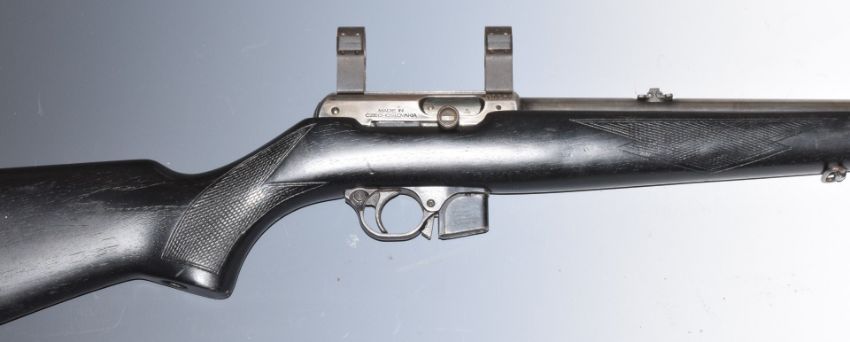 BRNO Model 581 .22 semi-automatic rifle with chequered semi-pistol grip, magazine, scope mounts, sling suspension loops, pop-up sights and 22 inch barrel, overall length 97.5cm, serial number 10230. PLEASE NOTE THAT A VALID RELEVANT FIREARMS/SHOTGUN CERTIFICATE IS REQUIRED TO HANDLE/PURCHASE THIS ITEM.