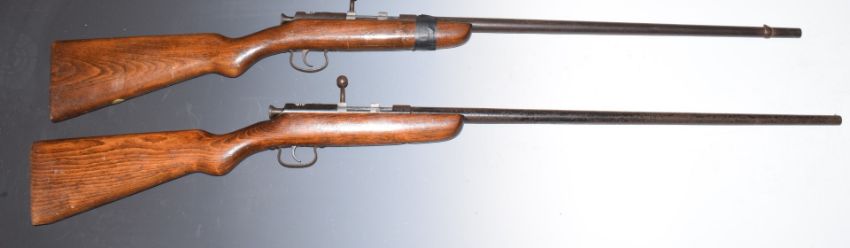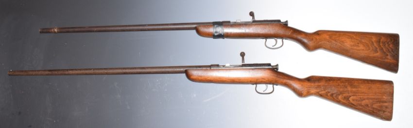 Two Webley & Scott .410 single barrelled bolt-action shotguns with 25.5 and 23.5 inch barrels, serial numbers 1445 and 5211. PLEASE NOTE THAT A VALID RELEVANT FIREARMS/SHOTGUN CERTIFICATE IS REQUIRED TO HANDLE/PURCHASE THIS ITEM.