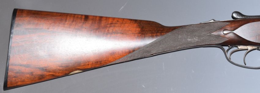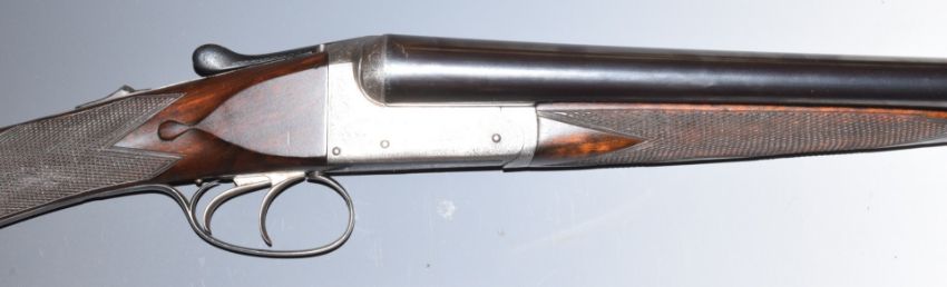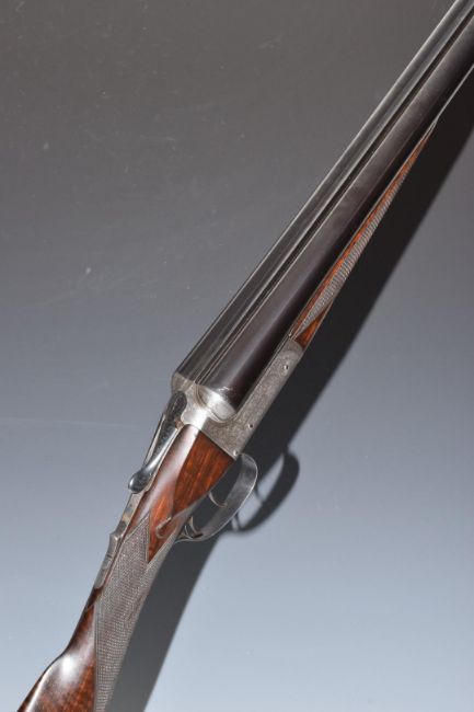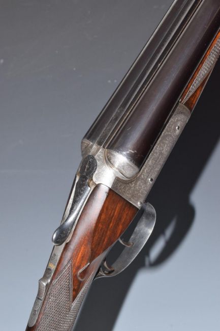 Charles Ingram 12 bore side by side ejector shotgun with named and engraved locks, engraved underside, trigger guard, top plate, fences and thumb lever, chequered grip and forend, carved teardrop to the wrist, vacant cartouche to the underside of the stock, double trigger and named 28 inch unchoked barrels, overall length 112cm, length of pull 36cm, serial number A5509. PLEASE NOTE THAT A VALID RELEVANT FIREARMS/SHOTGUN CERTIFICATE IS REQUIRED TO HANDLE/PURCHASE THIS ITEM.