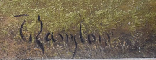 G Langton oil on board of a terrier by rabbit hole, 19 x 24cm