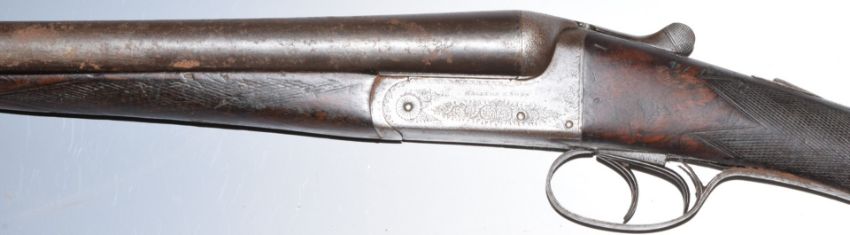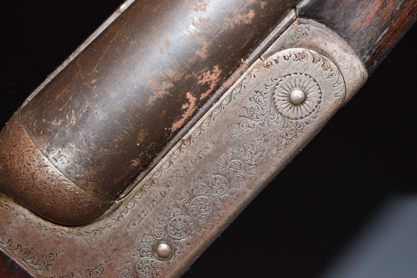 Gallyon & Sons 12 bore side by side ejector shotgun with named and engraved locks, engraved underside, trigger guard, fences, top plate and thumb lever, chequered grip and forend, vacant cartouche to the underside of the stock, double trigger and 30 inch barrels engraved 'Gallyon & Son 66 Bridge Street Cambrindge' and choked ½ and improved cylinder, overall length 118.5cm, length of pull 37.5cm, serial number 1052. PLEASE NOTE THAT A VALID RELEVANT FIREARMS/SHOTGUN CERTIFICATE IS REQUIRED TO HANDLE/PURCHASE THIS ITEM.