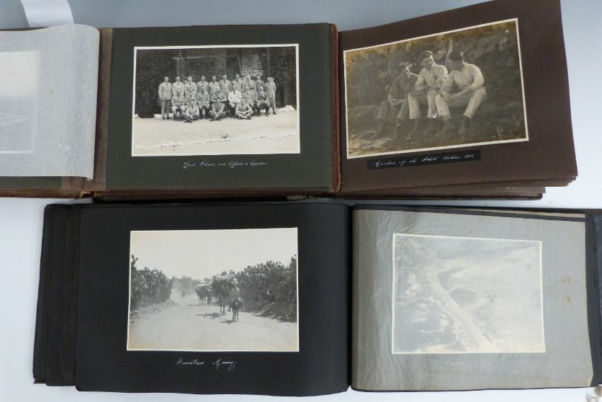 Three albums of 1920's photographs relating to no 14 Squadron RAF in the Middle East, taken by R N H Pearce of the RAF Photographic Section based in Ramleh, Palestine, now Ramla in Israel.The first album of approximately 100 photographs begins in Jerusalem and includes the Wailing Wall, street scenes and bazaars, Government House and several aerial views, continues with Bethlehem including Garden of Gethsemanie, Amman, Petra and Jaffa including scenes at the well and local boys, aerial views of Jaffa and Tel Aviv, aircraft including Vickers Victoria and Southampton sea plane and no 14 Squadron jazz band 1924The second album comprises approximately 48 photographs, many aerial views and aircraft in flight including Night-hawk over No 8 Squadron, DH9A in Iraq, Amman Camp, Petra, River Jordan Jericho, Kurcuk 'Drome, Haifa etc, also many aircraft and personnel including 55 Squadron Kurcuk, AOC inspecting 14 Squadron RAF, Neba-Saleh at Ramleh, Inspection by Sir John Salmon at Ramleh, the Jaffa train at Ludd andĀ images of Iraq including Baghdad.The third album of approximately 48 photographs comprises several aerial views including Jericho, war cemeteries in Palestine, Ramleh village and 14 Squadron base, further Ramleh etc., many images of everyday life in Ramleh including pottery bazaar, personnel and aircraft including forced landing, preparing breakfast, dinner beside the railway line, 'Drome showing three types of machine, Vickers Vinny from Egypt with 'spare engine' and Vickers Vernon ambulance, and finally HMS Caradoc and Queen Elizabeth.