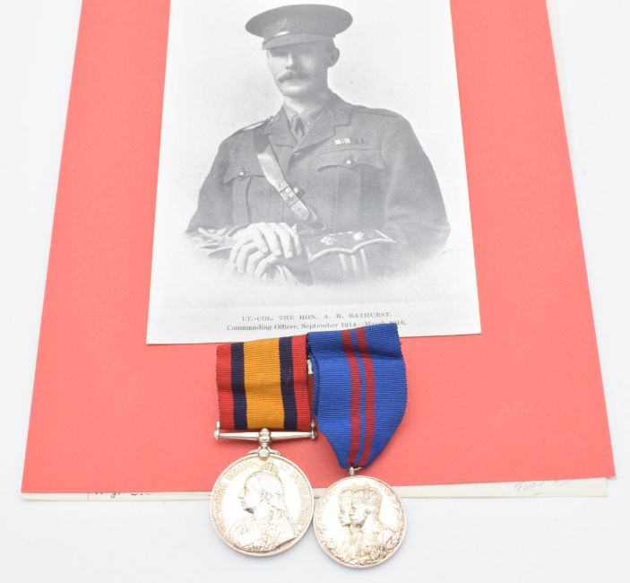 Queen's South Africa Medal 1899 named to Captain The Honorable A B Bathurst, Gloucestershire Regiment, together with a Coronation medal 1911 and paperwork