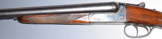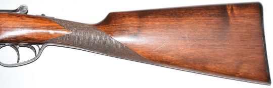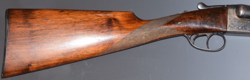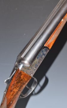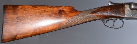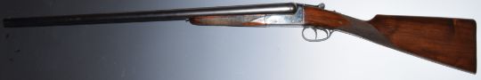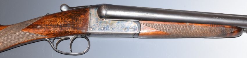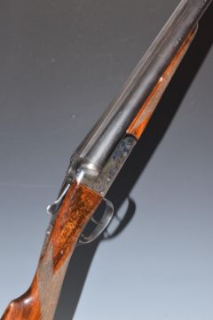 AYA 12 bore side by side shotgun with chequered grip and forend, double trigger and named 28 inch barrels choked improved cylinder, overall length 114cm, length of pull 37cm, serial number 537982. PLEASE NOTE THAT A VALID RELEVANT FIREARMS/SHOTGUN CERTIFICATE IS REQUIRED TO HANDLE/PURCHASE THIS ITEM.