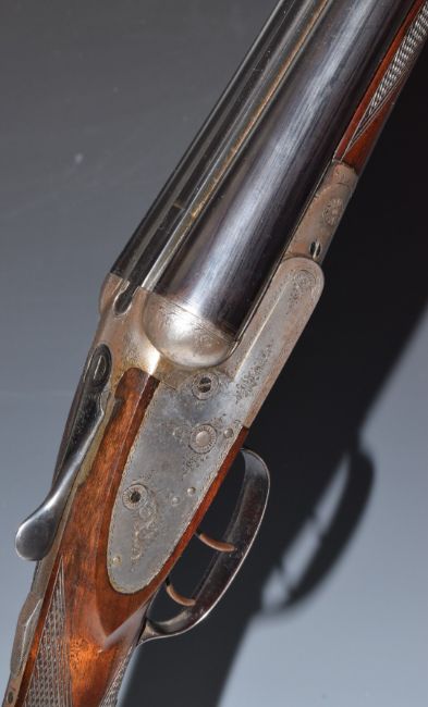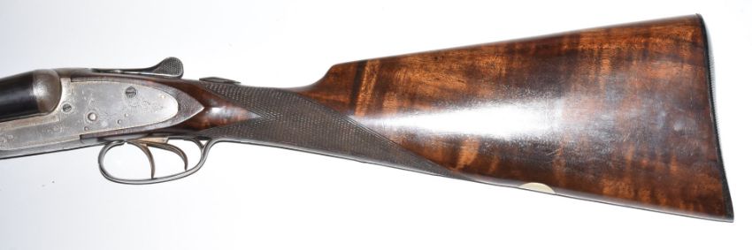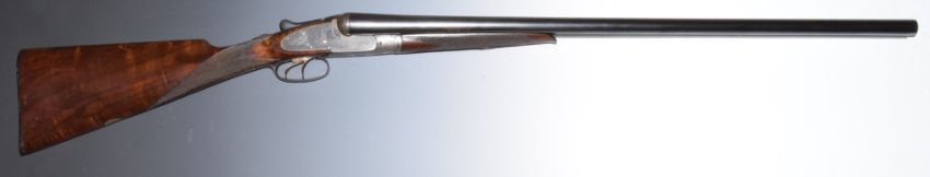 Charles Ryland & Co 12 bore sidelock side by side sidelock shotgun with engraving to the locks, trigger guard, underside, top plate, fences and thumb lever, chequered grip and forend, vacant cartouche to the underside of the stock, double trigger and 28 inch barrels choked ½ and ¼ and engraved 'Chas Ryland & Co 18 Weaman St Birmingham', overall length 114cm, length of pull 36.5cm, serial number 2386.  PLEASE NOTE THAT A VALID RELEVANT FIREARMS/SHOTGUN CERTIFICATE IS REQUIRED TO HANDLE/PURCHASE THIS ITEM.