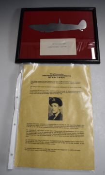 Royal Air Force aluminium profile of a Spitfire in frame with Wing Commander D G Cox signature verso and information sheet