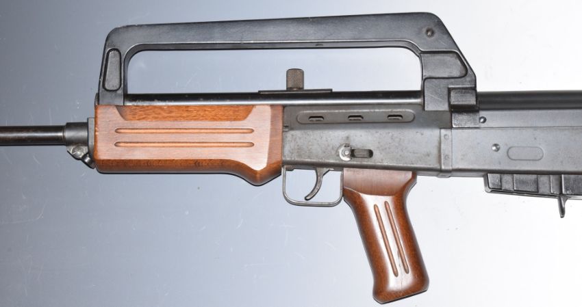 Adler Jager AP85 6mm Flobert French Bull-Pup assault rifle style shotgun with wooden pistol grip, stock and forend, sling mounts and 25 inch smooth bored barrel, overall length 87cm, length of pull 38cm, serial number 1366. PLEASE NOTE THAT A VALID RELEVANT FIREARMS/SHOTGUN CERTIFICATE IS REQUIRED TO HANDLE/PURCHASE THIS ITEM.