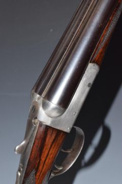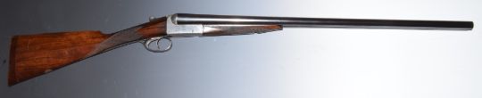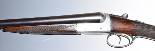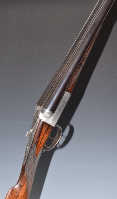 F P Baker & Co 12 bore side by side ejector shotgun with chequered grip and horn tipped forend, vacant cartouche to the underside of the stock, double trigger and 28 inch barrels engraved 'F P Baker & Co Ltd 1 Golden Square London W1' and choked cylinder and ¾, overall length 112.5cm, length of pull 36.5cm, serial number 3712. PLEASE NOTE THAT A VALID RELEVANT FIREARMS/SHOTGUN CERTIFICATE IS REQUIRED TO HANDLE/PURCHASE THIS ITEM.