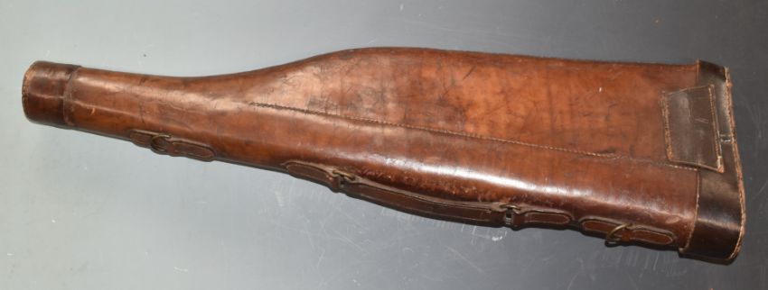 A vintage 'leg of mutton' leather gun case with brass lock, L78cm.