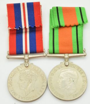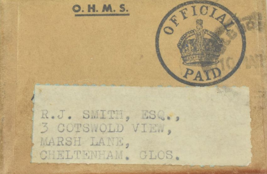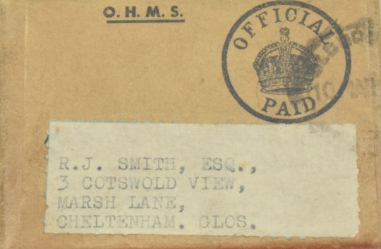 Royal Air Force WW2 medal pair comprising War Medal and Defence Medal for LAC R Smith 907540, with address postal box for Cheltenham