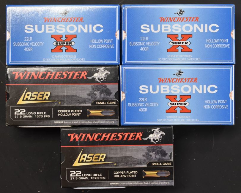 Three-hundred-and-nine Winchester Super X .22 40gr hollow-point rifle cartridges, all in original boxes. PLEASE NOTE THAT A VALID RELEVANT FIREARMS/SHOTGUN CERTIFICATE IS REQUIRED TO HANDLE/PURCHASE THIS ITEM.We are not able to offer our usual postage service for this lot