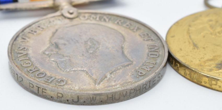 British Army WW1 medals comprising War Medal and Victory Medal named to 53912 Pte P J Humphries, Machine Gun Corps