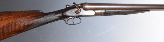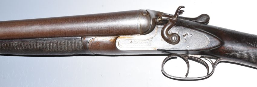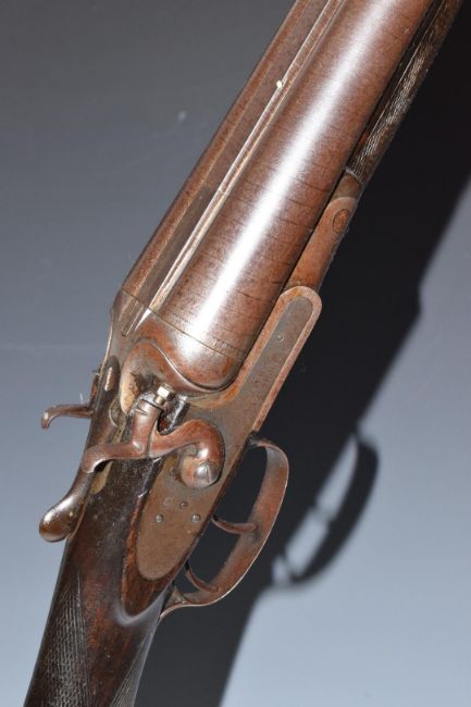 Thomas Adsett of Canterbury 10 bore side by side percussion hammer action shotgun with named lock, chequered grip and horn tipped forend, vacant cartouche to the underside of the stock, double trigger and 31.5 inch Damascus barrels engraved 'Adsett 4 Upper Bridge Street Canterbury', overall length 122cm, length of pull 36cm, serial number 2385. PLEASE NOTE THAT A VALID RELEVANT FIREARMS/SHOTGUN CERTIFICATE IS REQUIRED TO HANDLE/PURCHASE THIS ITEM.