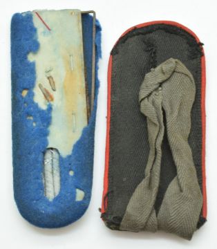 German Army WW2 medical officer's shoulder board together with an artillery example, acquired by a Sherwood Forester sergeant for his intelligence officer in France late 1944