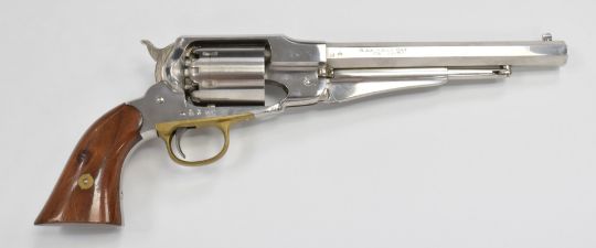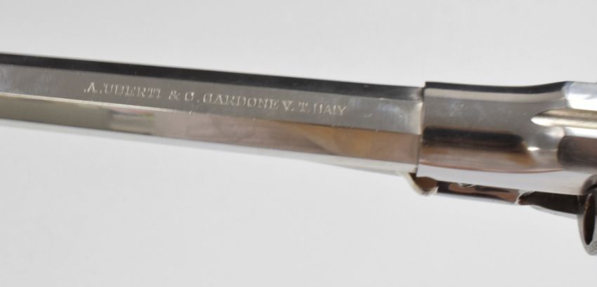 Uberti .44 six-shot single action revolver with shaped wooden grips, brass trigger guard and 7.75 inch octagonal barrel engraved 'A. Uberti & C. Gardone . V. Italy', overall length 36.5cm, serial number 65296. PLEASE NOTE THAT A VALID RELEVANT FIREARMS/SHOTGUN CERTIFICATE IS REQUIRED TO HANDLE/PURCHASE THIS ITEM.