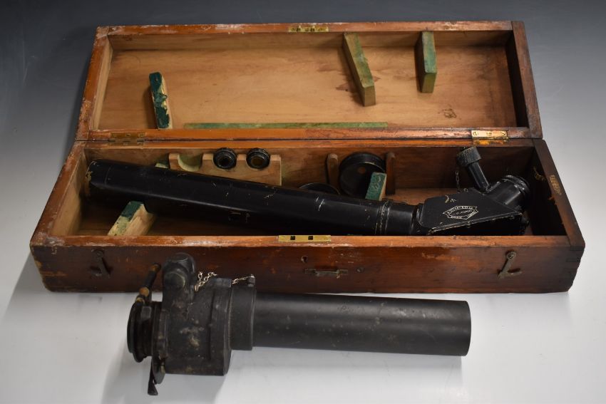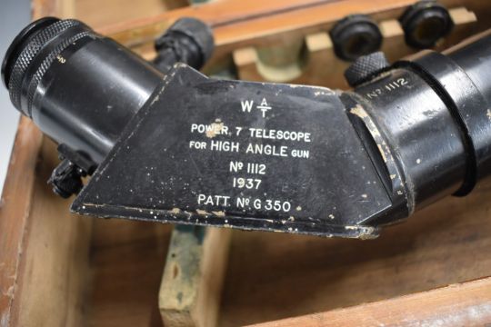 Two military gun sights, one cased by Ottoway & Co, Power 7 telescope for high angle gun, dated 1937, the other 7x50 by Canada Kodak CC Ltd
