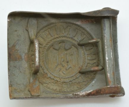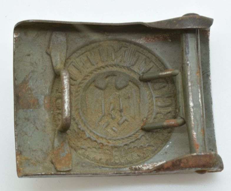 German WW2 Third Reich Nazi metal belt buckle with 'Gott Mit Uns' logo retaining some original paint, acquired by the vendor's father while serving in France and Germany during WW2