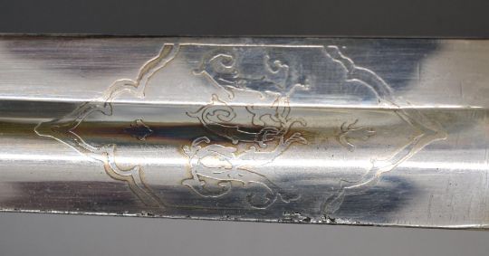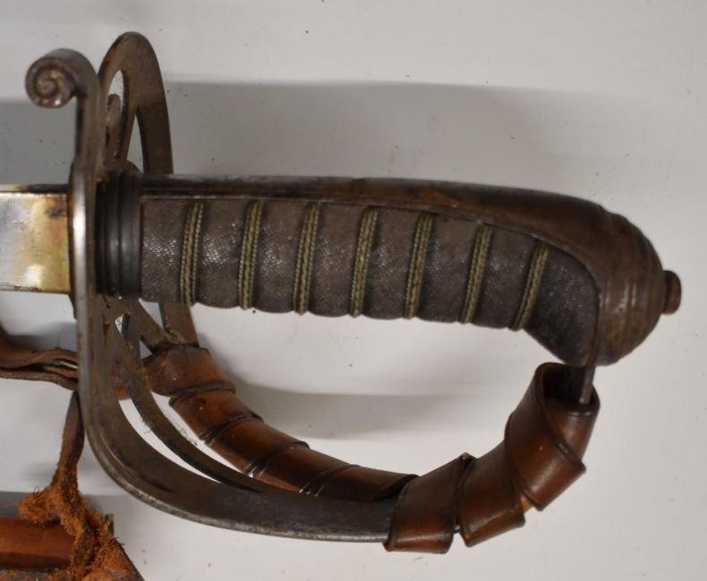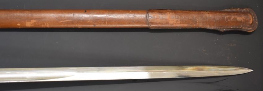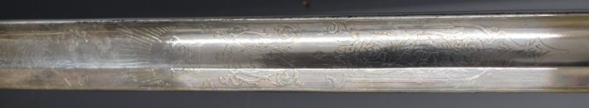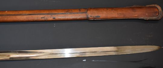 British 1827 pattern Rifle Officer's sword with strung bugle to guard, with 83cm etched blade, sword knot and scabbard