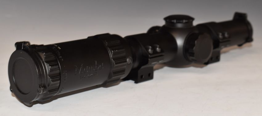 Optisan Mamba 1-4x20 CQB rifle scope with illuminated red dot, 37409, in original box.
