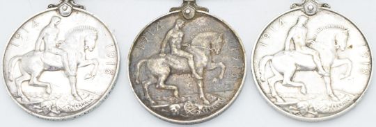 British Army WW1 medals comprising three War Medals named to 1656 Pte J Charlton, Royal Army Medical Corps, 88406 Sergeant A V Cobern, Royal Army Medical Corps and 17411 Pte W Lancaster, Army Veterinary Corps