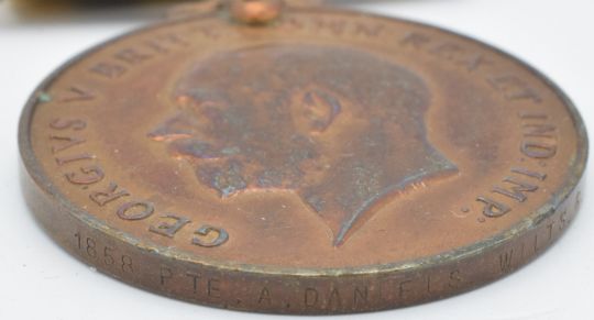 British Army WW1 Territorial Force War Medal named to 1858 Pte A Daniels, Wiltshire Regiment