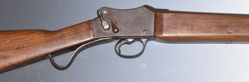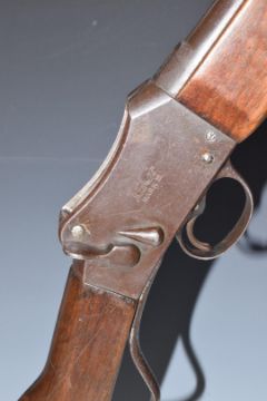 W W Greener EG Mark III 12 gauge Martini action police gun with named lock, storage compartment to the stock, cocking indicator, steel butt plate and 25.25 inch barrel choked ΒΌ, overall length 107cm, length of pull 36cm, serial number 38006. PLEASE NOTE THAT A VALID RELEVANT FIREARMS/SHOTGUN CERTIFICATE IS REQUIRED TO HANDLE/PURCHASE THIS ITEM.