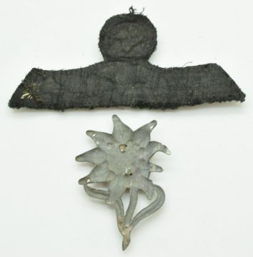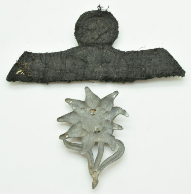 German Army WW2 Gebirgsjager Mountain Troops Edelweiss metal badge, together with a cloth officer's breast badge', acquired by a Sherwood Forester sergeant for his intelligence officer in France late 1944