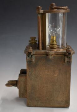 Bronze Royal Navy emergency navigation light with impressed 'Alaig' and 6220-99-925-6951, 31cm tall.