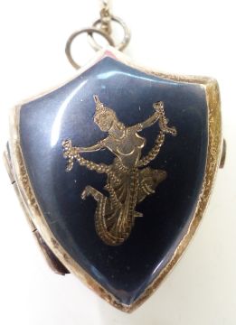 A collection of costume jewellery including silver gilt necklace, Victorian silver locket, silver heart locket, Siam silver locket, 9ct gold and silver ring, silver ring set with emeralds, silver clover brooch set with enamel brooch, etc