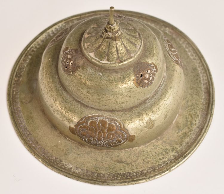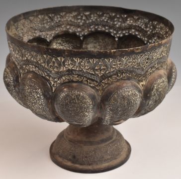 Indian or similar silver bowl with embossed lobed and pierced decoration, diameter 20cm, height 16cm, weight 457g, embossed silver plated tray and a similar lid