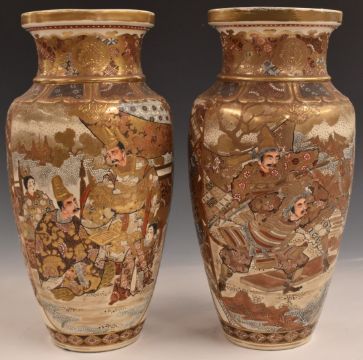 Large pair of Japanese Satsuma vases, H38.5cm