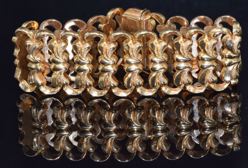 An 18ct gold bracelet in a stylised floral design, 42g