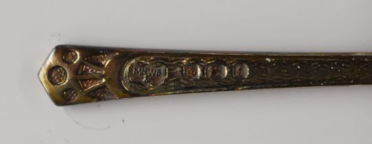 Mappin & Webb cased set of six hallmarked silver gilt guilloché enamel teaspoons with floral decoration, Birmingham 1981, length 10cm, weight 79g all in