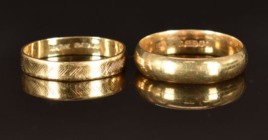 Two 9ct gold wedding bands, sizes N and S, 4.9g