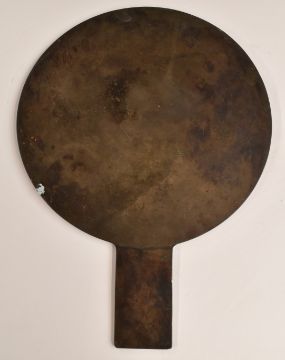 Large Japanese bronze mirror with relief moulded decoration, H49.5cm, diameter 36cm