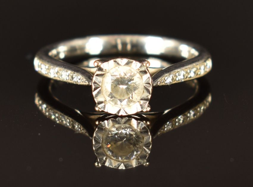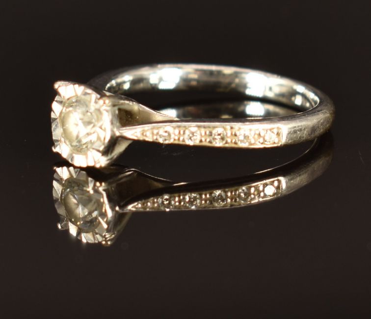 A 9ct white gold ring set with diamonds totalling approximately 0.4ct, size K, 2.6g