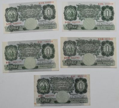 Five £1 notes 1928-1955 Mahon, Catterns, Peppiatt, Beale and O'Brien