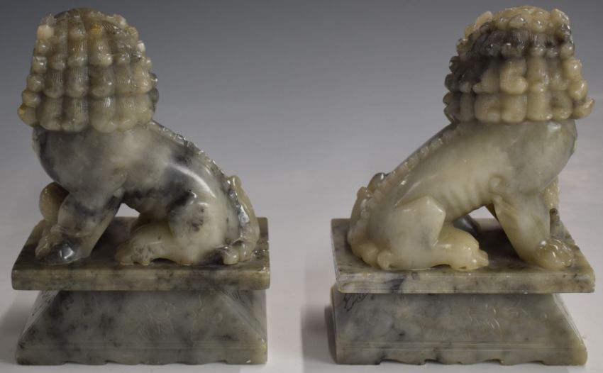 Pair of Chinese carved stone Dog of Fo figures, H19cm