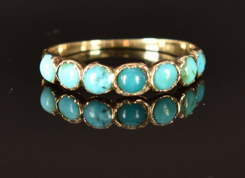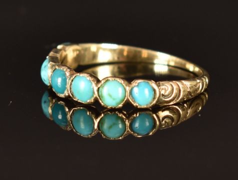 Victorian ring set with turquoise cabochons, size O, 0.9g