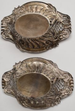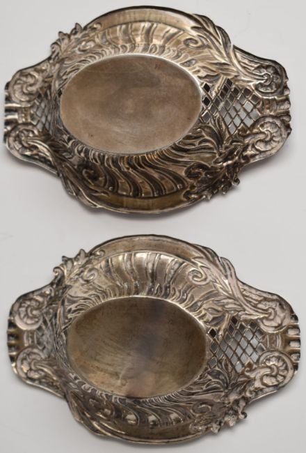 Victorian pair of hallmarked silver bon bon dishes with pierced and embossed decoration, Chester 1898, maker George Nathan & Ridley Hayes, length 12.5cm, weight 54g