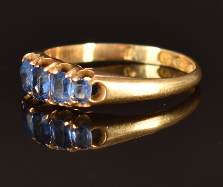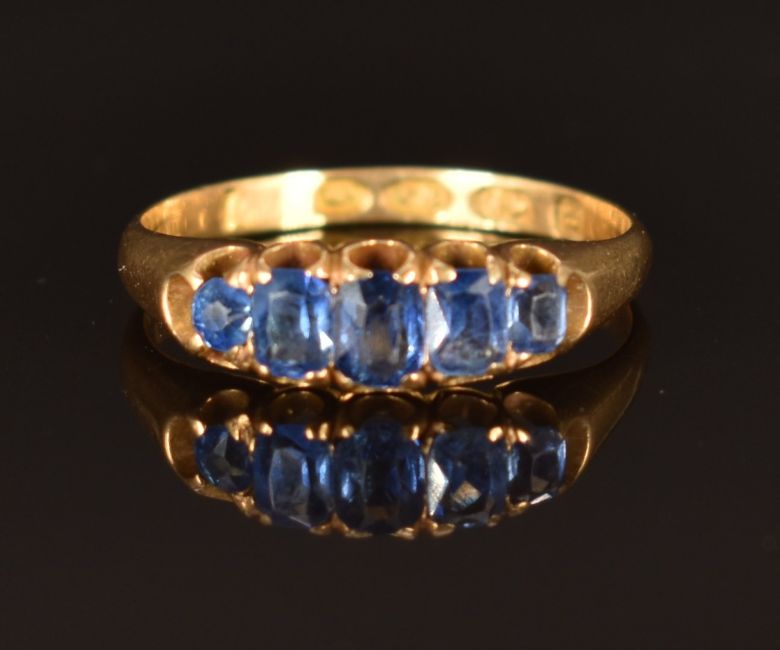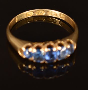 An 18ct gold ring set with sapphires and diamonds, Birmingham 1941, size N, 3.3g