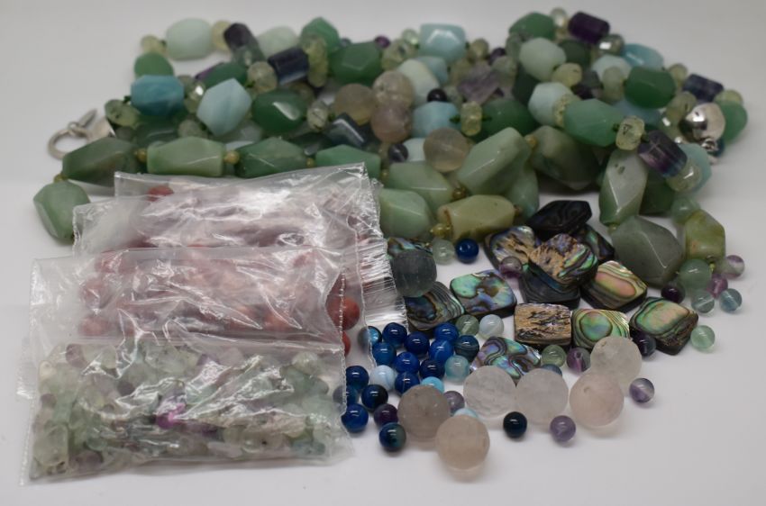 An agate and fluorite necklace by Jaeger, agate necklace, coral beads, agate beads, etc