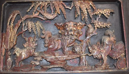 Chinese carved relief moulded plaque, 30 x 50cm