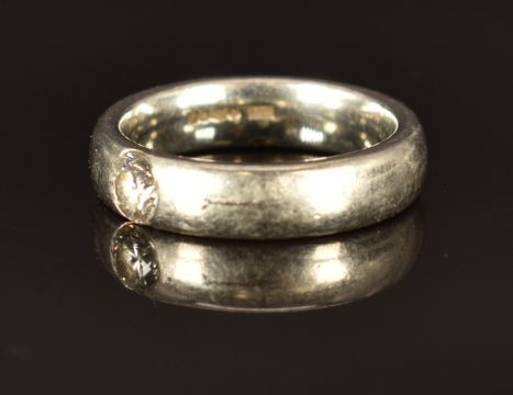 A platinum ring set with a round cut diamond of approximately 0.25ct, 9.3g, size I/J
