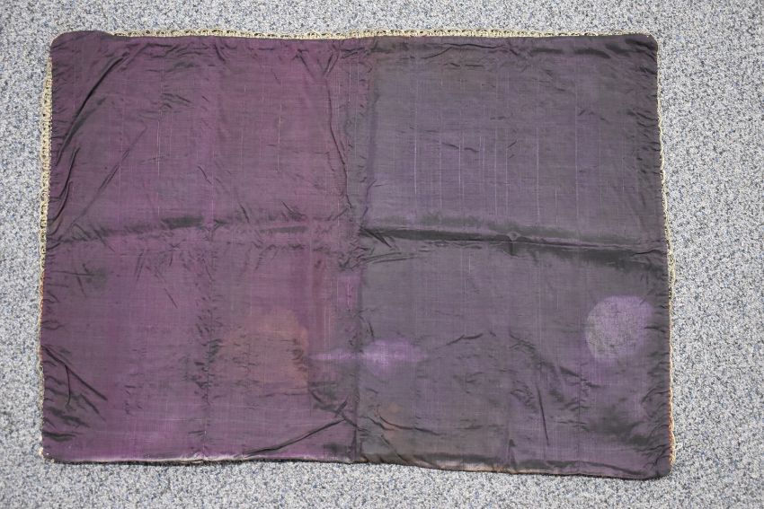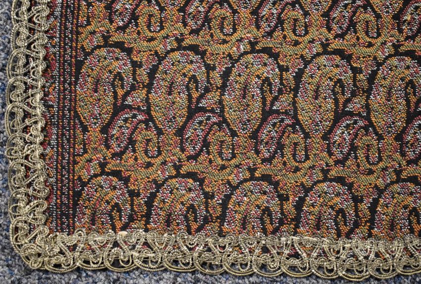 Embroidered antique prayer mat with braid work border, 73 x 50cm