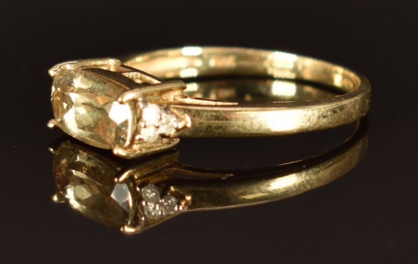 A 9k gold ring set with a zultanite and diamonds, size M, 2.1g