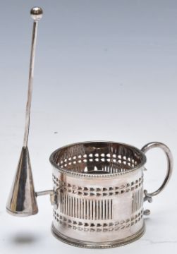19thC Mappin & Webb silver plated chamber stick with pierced decoration and attached snuffer, H18cm
